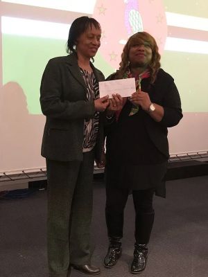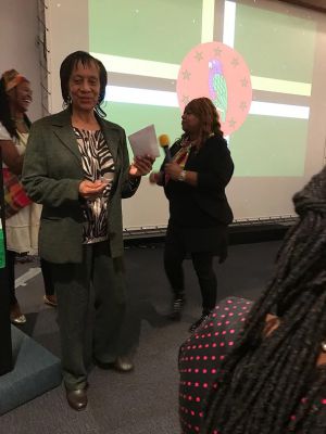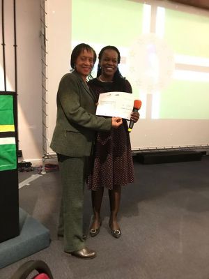 During the evening Sherrie took advantage of a raffle prize donated by former World Champion Kick Boxer Darren Eli whose family are Dominican. The prize was not only a pair of boxing gloves, but a training skipping rope. We managed to raise £60 in the auction which was won by Richard Eugene. It was at this point that people started to emerge from the audience with cheques and pledges of cash for Dominica. Dr Marie-Annick Gournet from Guadeloupe presented £2,000. Tan Teddy £200. African voices pledged £200, whilst Rotary Club International gave a presentation on how they can help us link with funders.