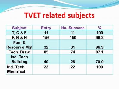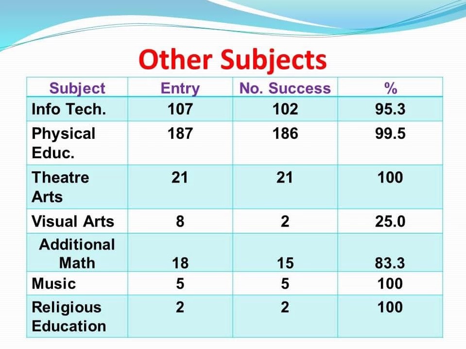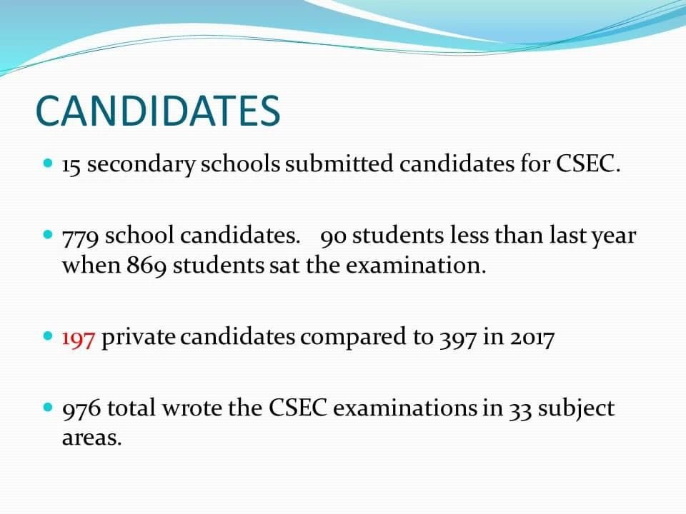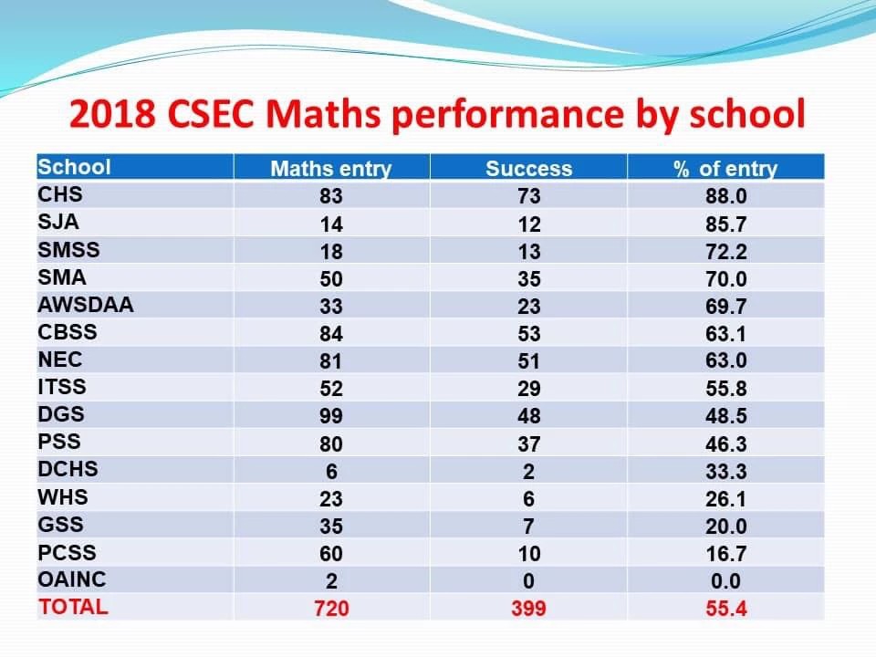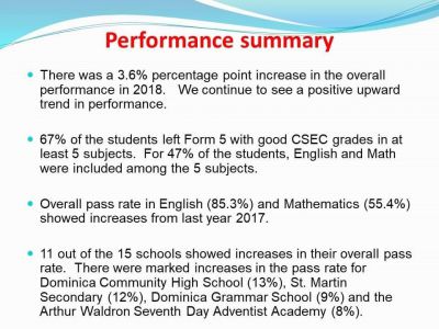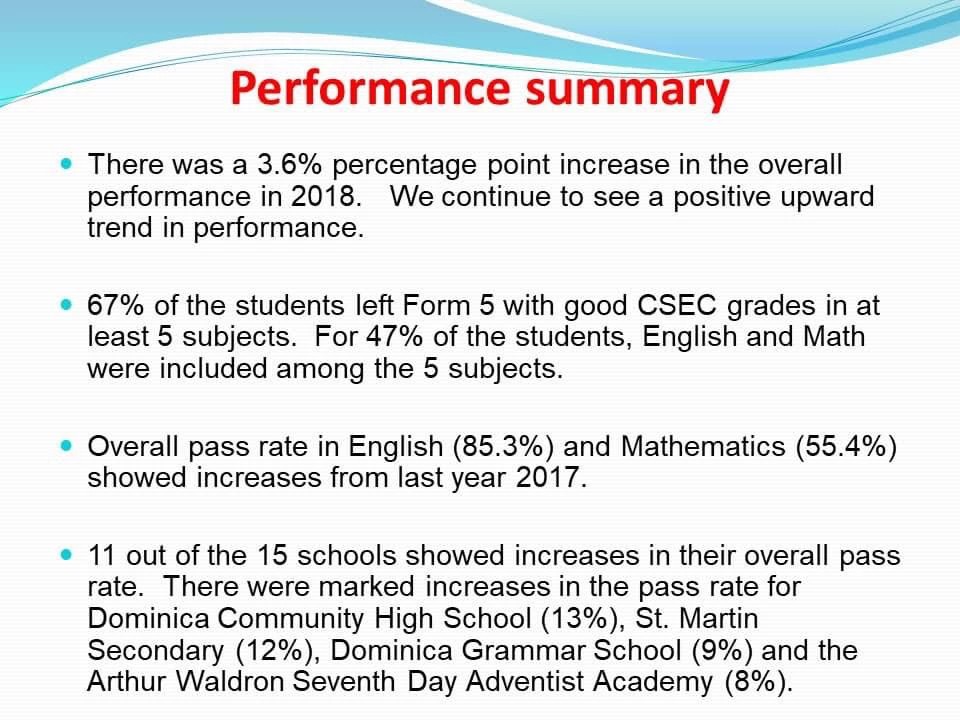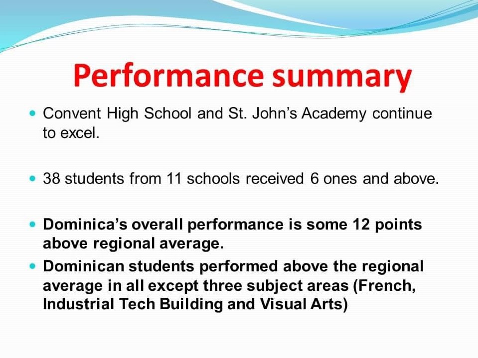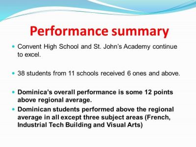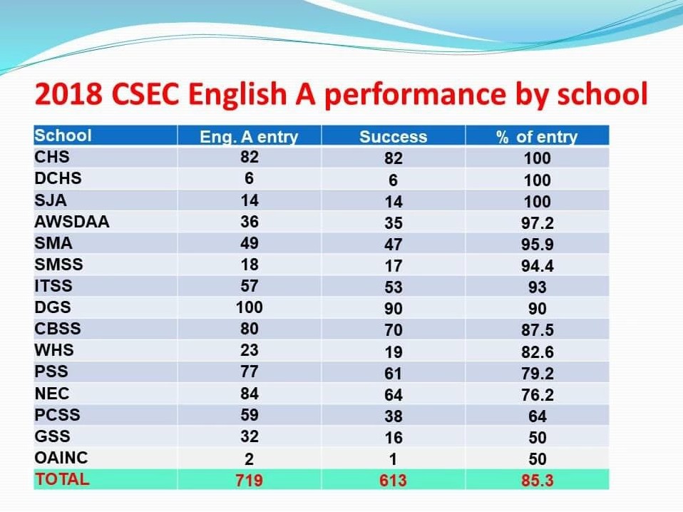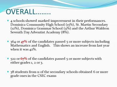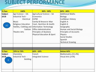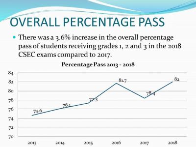 With a 3.6 percent increase in the overall percentage pass, and an overall average twelve points higher than that of the region, Saint Jean stated that the students should be congratulated for their success.